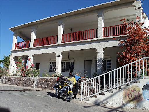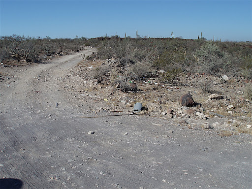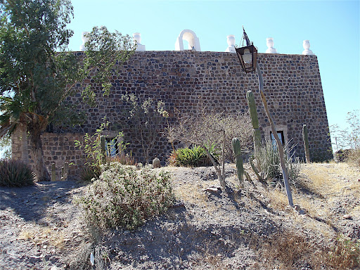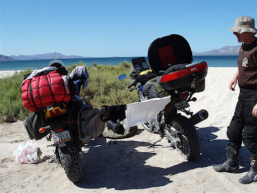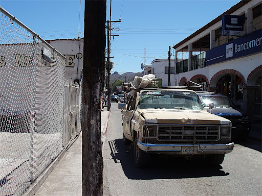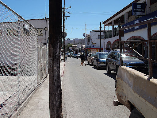 off we headed toward loreto. we'd never been this far south so from here on out it was all new to us. obviously we took the transpeninsular right in to loreto. as we approached the town, ye began recalling the map he'd scanned miles before and he remembered we needed to turn in sooner, rather than later to find the main drag that led to the malecón. unfortunately we turned too early. instead of stopping and asking for directions, we decided the best plan of action was to pick someone and follow them. we were in the heart of the residential section following a van. he really knew where he was going because we dodged detours and came out on roads that obviously only a local would find. we took a road where there were houses on one side, complete with barking, rabid, dogs and absolutely nothing on the other before making our final turn up a desolate road and right. . .up to the guy's driveway!