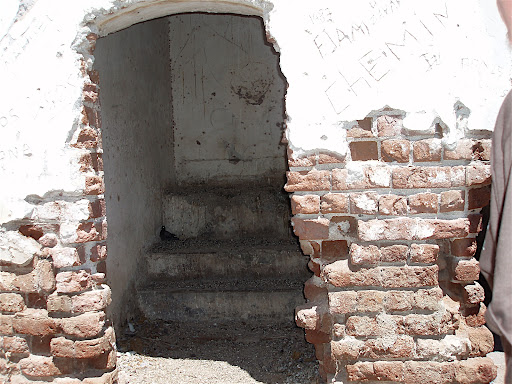 i couldn't quite figure out what the steps in the back of this cell had to do with anything, but by this point the smell of pigeon droppings, things flying out of every door, window and hole in the place had me on pins and needles.