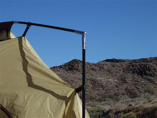 well, wouldn't you know it, one of those stupid poles was not going to cooperate. seems it was a bit weak anyway. . .but not to worry, ye can fix it in no time with the DUCT TAPE!!!!
