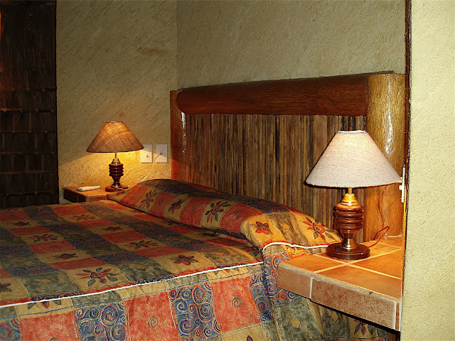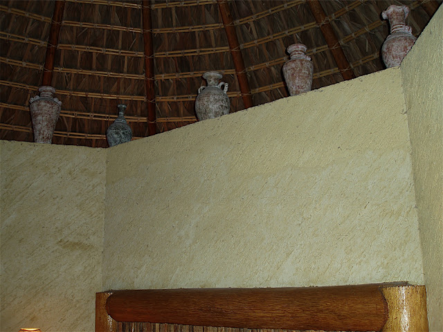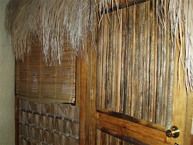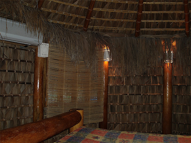 although the bathroom sections had hard walls, the palapa itself was made of woven leaves. this shot gives you an idea. it doesn't work too well as a sound barrier so we slept with earplugs.