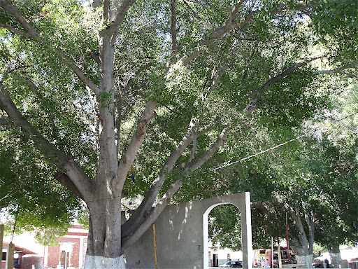 the huge laurels keep the plaza shaded all day. it is a great spot to park the bikes and take a break. there is a beautifully preserved mission that sits on the west side of the plaza.