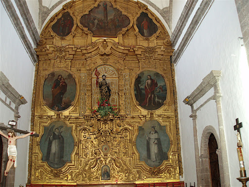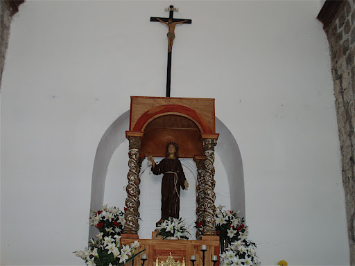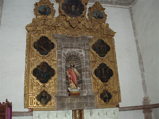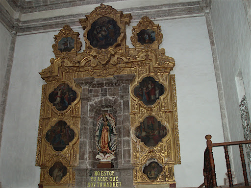 and this is the main alter. i was a bit confused by this as the small cross with Jesus is above the much larger statue of mother mary. that seemed to be a theme so maybe it's something uniquely mexican?