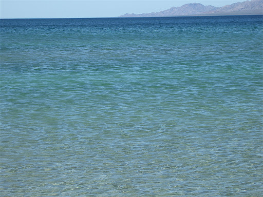 look at how blue and pretty this bay is. there is some sort of critter or critter body that makes the water this blue.