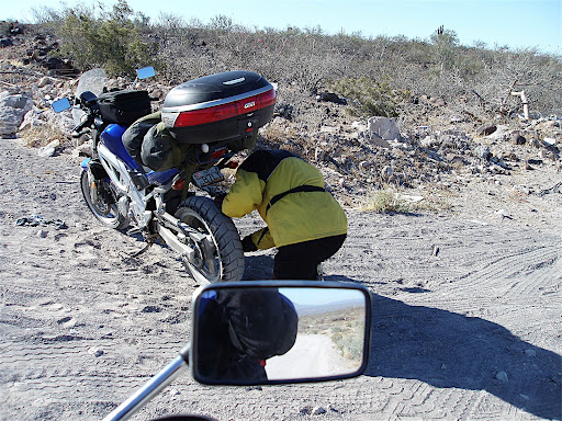 The road from San Ignacio has deteriorated in recent years; most passenger cars need at least two hours to cover the 40 miles (65 km) to La Fridera fish camp (assuming no rain has fallen recently) without wrecking their suspension. The first half of the road from the village is spine-wrenching washboard, but the second is notably better.hmmmm, not thrilled about that description as we'd found lonely planet to be pretty reliable, i was riding with that dented rim and cabo was still quite a distance from where we were.