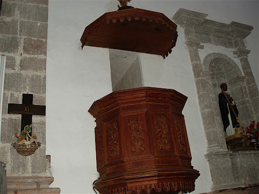 a pulpit hanging off the wall for some reason. the doorway to this balcony looked to be about 18" wide.